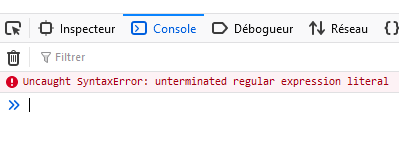 Le JavaScript n'est pas aussi souple que le python pour le débugage. Nous allons apprendre une méthode de base pour débugguer.